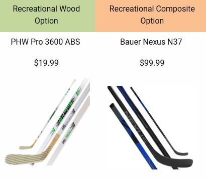 While composite sticks are lighter and more flexible (and more fragile) than their wood counterparts, they are also significantly more expensive with recreational models starting at $100. The obvious question being, does a new youth player or a player under the age of 10 need a composite stick? New players generally won't be able to take advantage of the benefits of a composite stick, and if they are going to outgrow one or two sticks before they develop those skills, does it make sense to pay so much?