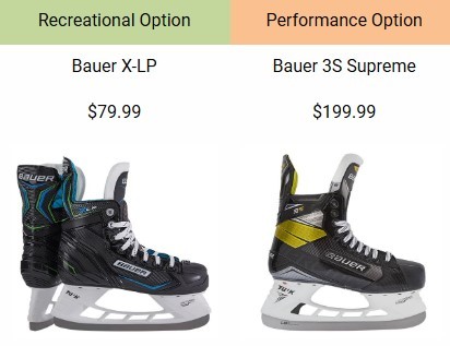 Hockey skates can be the most expensive piece of equipment for your youth player. Each major brand has multiple product lines of skates and multiple price points within each line.