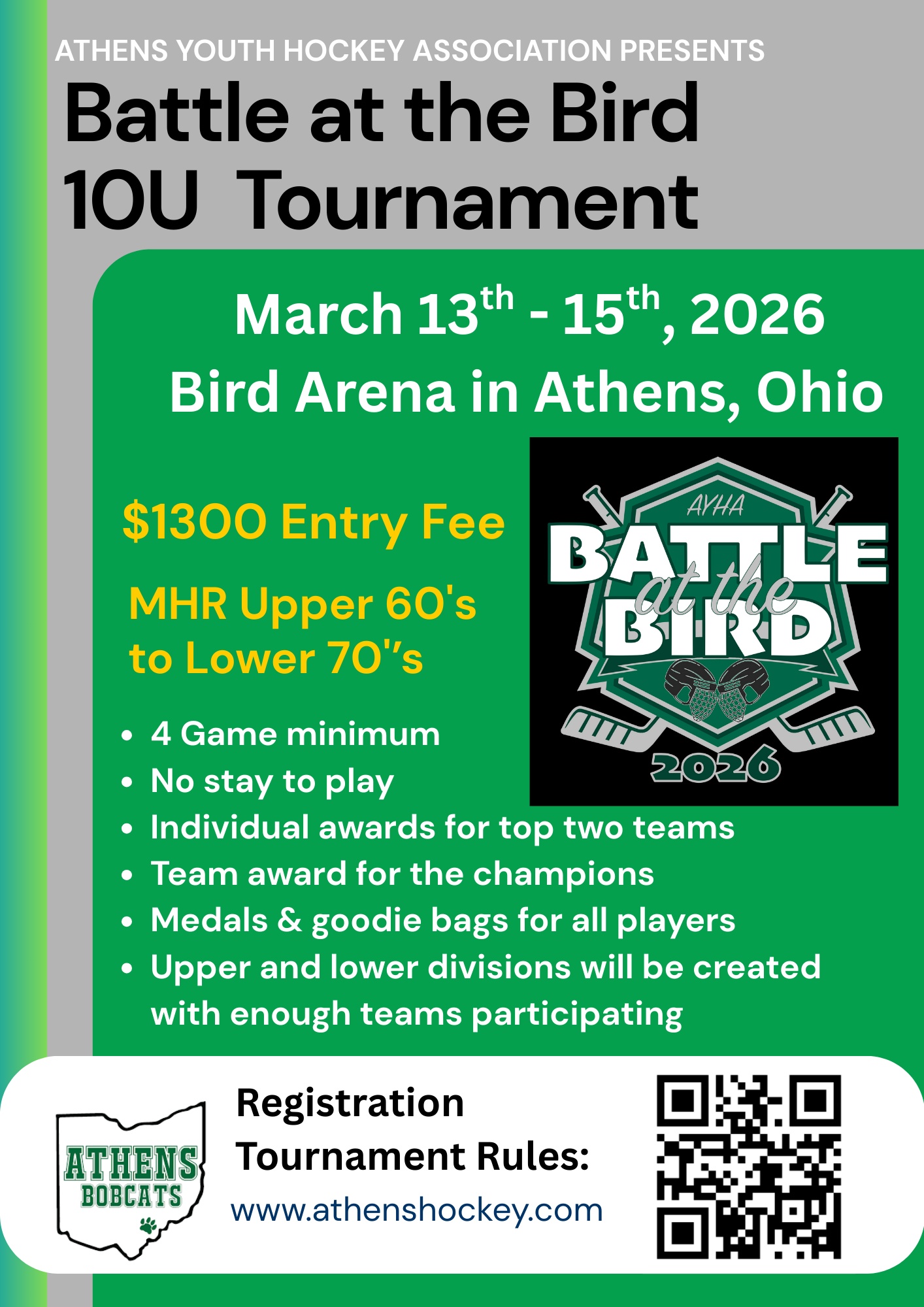 Athens Youth Hockey Association is hosting two tournaments this 2025-2026 season:
